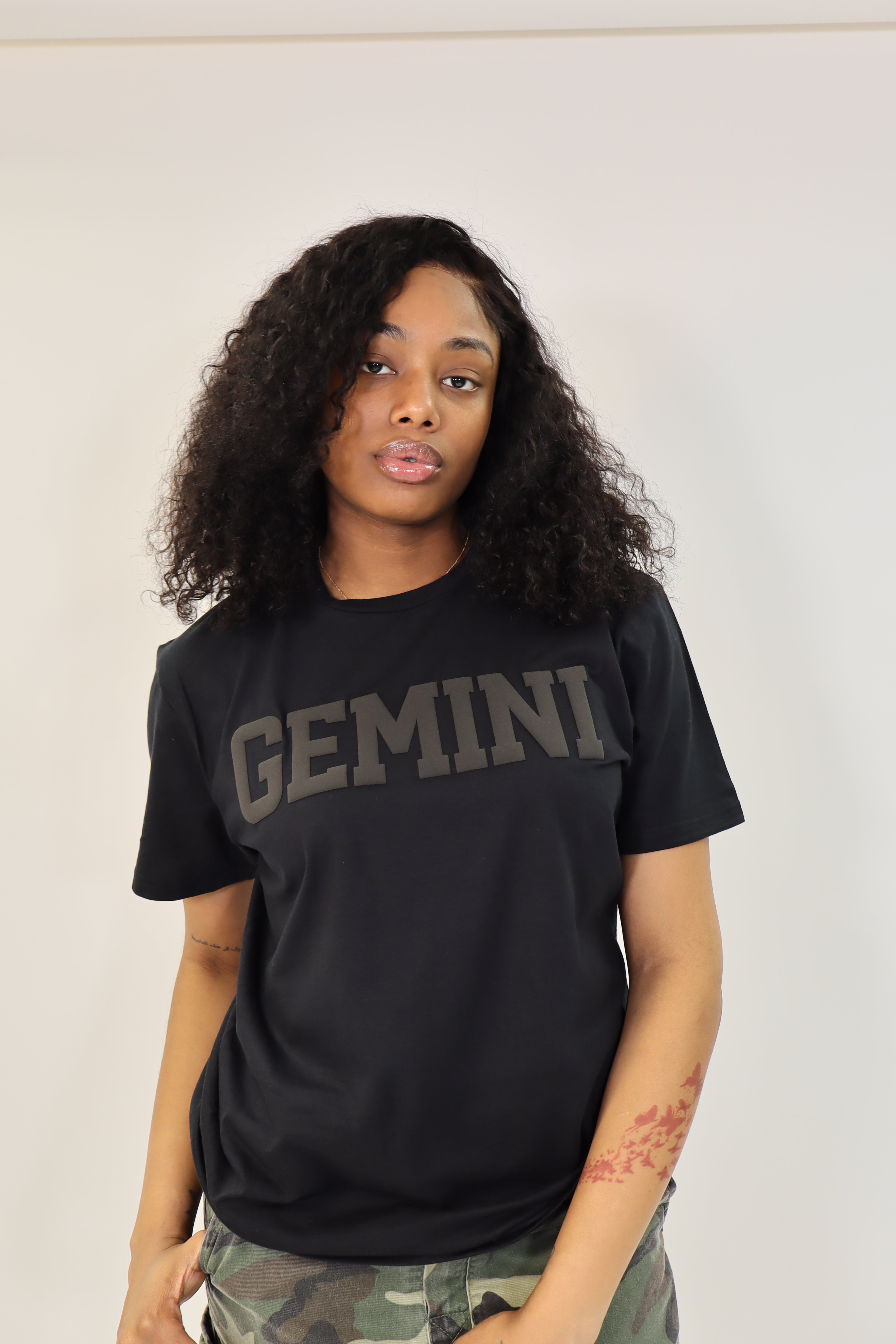 Black Zodiac Puff Print Crewneck