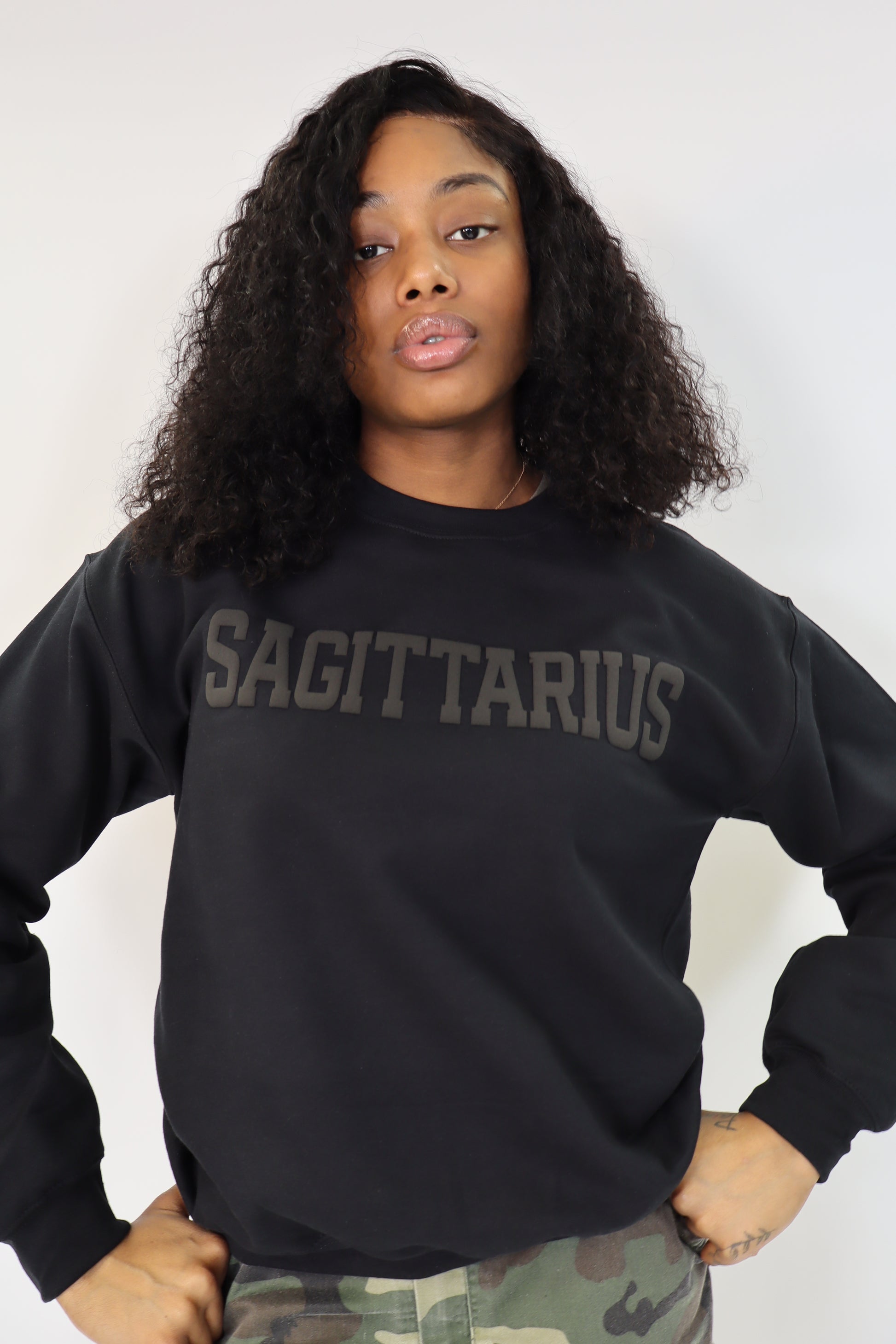 Black Zodiac Puff Print Crewneck